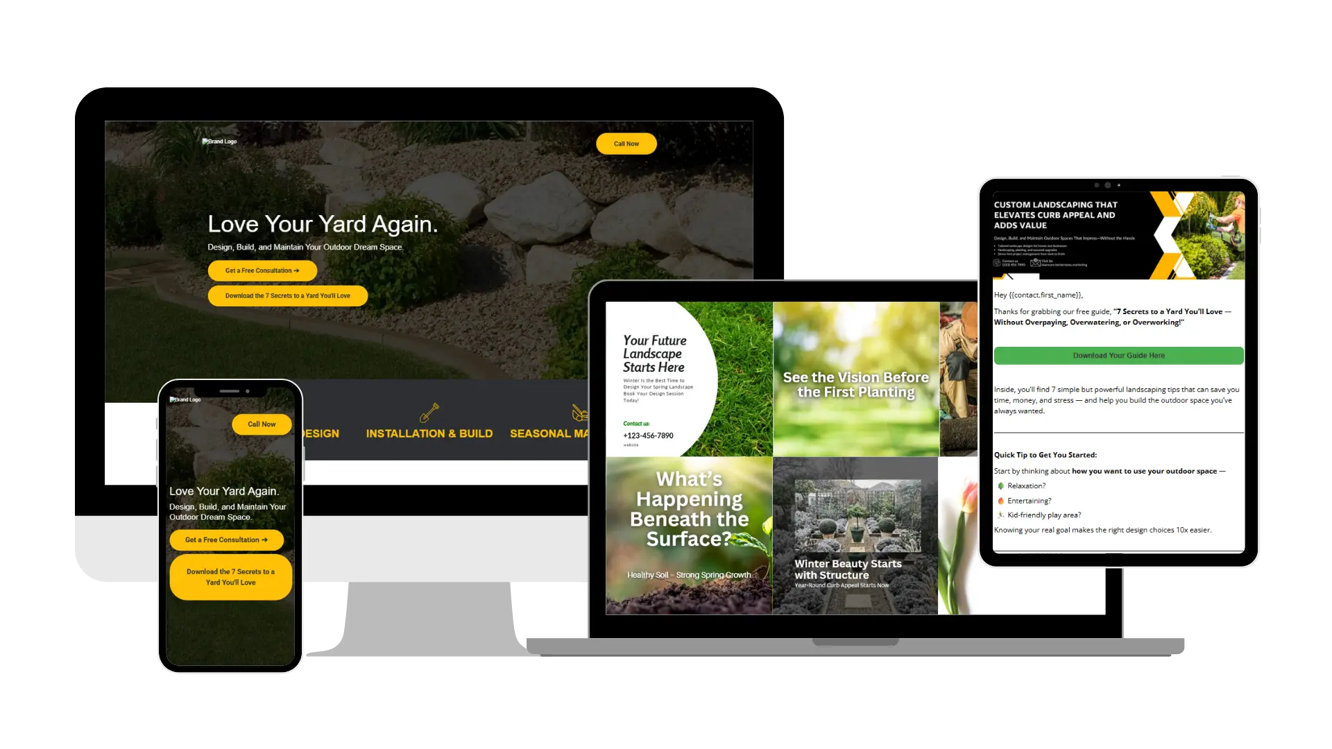 The Landscaper BrandPack will provide you with the tools you need to save time, save money, generate new lead and convert them into paying clients.